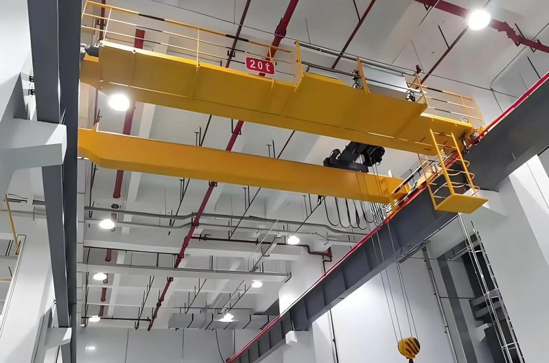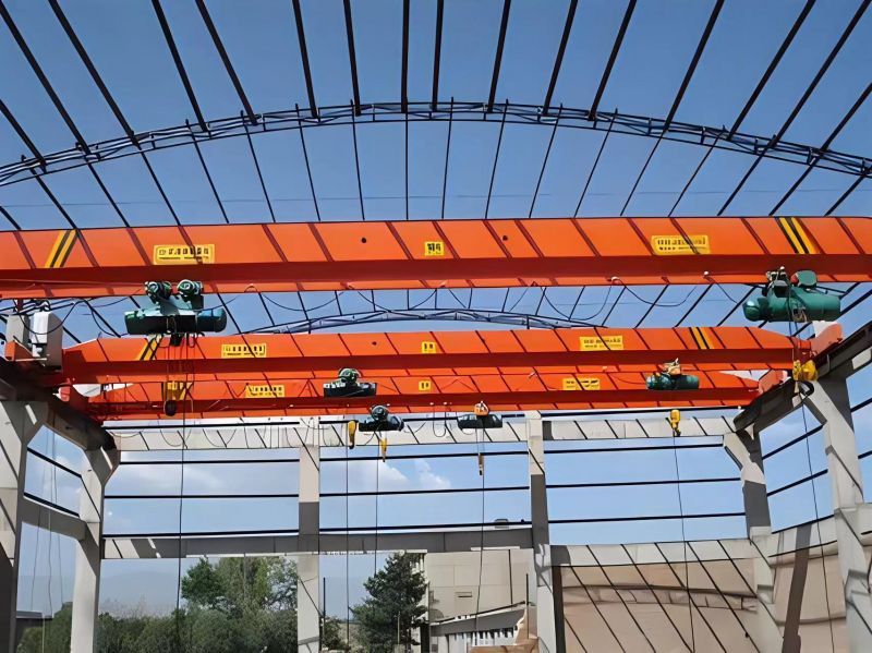 雙梁橋式起重機的安全檢查為了保證橋式起重機的安全運行,在起重機運行期間需進行一些安全常規檢查,檢查項目及要點如下: ?。?) 起升高度限位器、行程限位開關及各聯鎖機構性能正常,安全可靠?! 。?) 各主要零部件符合安全要求:開口增大小于原尺寸的15%,扭轉變形小于10%;板鉤襯套磨損小于原尺寸的50%,板鉤心軸磨損小于5%,無剝落、毛刺、焊補。吊鉤掛架及滑輪無明顯缺陷。鋼絲繩表面鋼絲磨損、腐蝕量小于鋼絲直徑的40%,斷絲在一個捻距內小于總絲數的10%,無斷頭,無明顯變細,無芯部脫出、死角扭擰、擠壓變形、退火、燒損現象。鋼絲繩端部連接及固定的卡子、壓板、鍥塊連接完好,無松動,壓板不少于2個,卡子數量不少于3個。卷筒無裂紋,連接、固定無松動;筒壁磨損小于原壁厚的20%;安全卷不少于2圈,卷筒與鋼絲繩直徑比例符合要求。平衡輪固定完好,鋼絲繩應符合的要求。制動器無裂紋,無松動,無嚴重磨損,制動間隙兩側相等尺寸合適,有足夠的制動力,制動帶磨損小于原厚度的50%?! ⊥ㄟ^對雙梁橋式起重機的安全常規檢查,對杜絕人身事故,減少設備事故,提高設備運轉率,降低檢修費用等均起到了顯著作用。